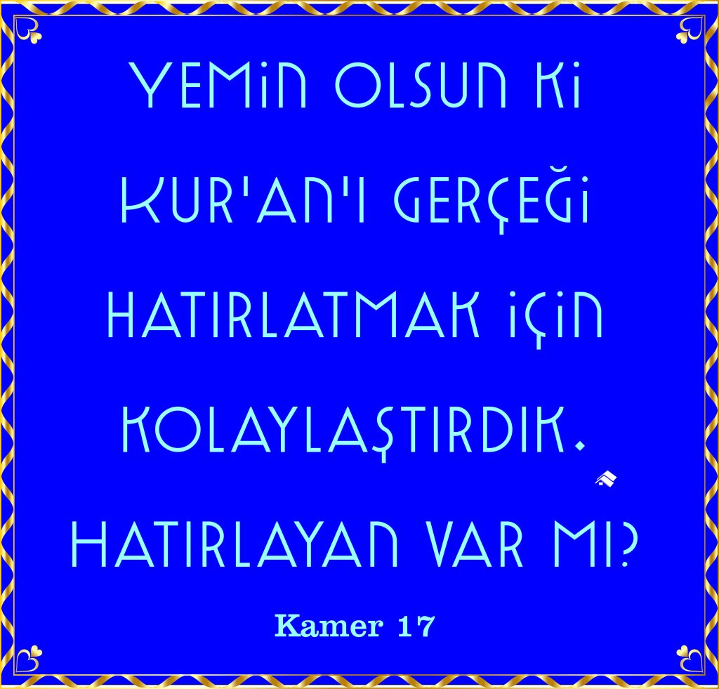 Günün Ayeti 23 Eylül 2024 Anlayabilmemiz İçin Kur’an Kolaylaştırıldı. ile aydinorhon 54 Kamer Suresi, 17. Ayet EtiketlerKuran anlaşılır Kuran kolay Kuran kolaylaştırıldı Yazı gezinmesi Önceki YazıÖnceki Yüce Allah Her Salise Yaptıklarımızdan Haberdardır.Sonraki YazıSonraki Allah Dışında Başkalarından Beklentiye Girmeyin.