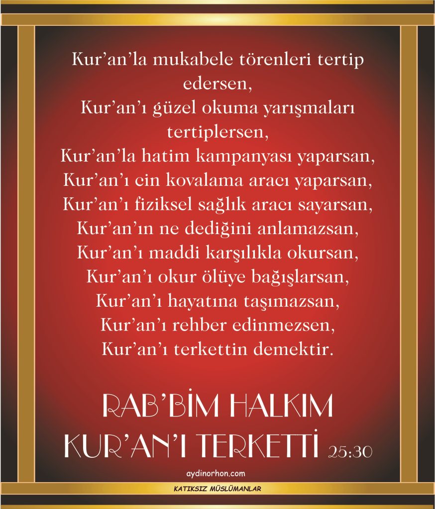 EtiketlerAbdest Adalet adil Ahiret ahkam Ahlak akıl alem alemler olmaz mıydı alemlere sebep Allah Allah'ın hadisi Allah'ın kelamı ashap atalar dini ateist ayat ayet batıl beddua bedevi beka berat beytullah biat bid'at caiz cami Cehennem cemaat cenaze Cenaze namazı Cennet cihad cihat destek din Allah'ın kitabındadır dini mezhepler doğru yolda olmak domuz domuz eti domuz yağı dua dünya düşünme elçi Elçiler Allah’ın Kitabına Çağırırdı evliya ezan farz Fatiha fitne fitre fıkıh gavs gerçek günah günah çıkartma güzellik hac hacamat hadis hadis ve sünnet hak hakikat halife haram hayır helal her mümin din görevlisidir hidayet hikmet hikmetin anlamı hikmetin önemi hurafe hutbe ibadet icma iftar ihlas ilahi nitelik iman infak İslam'ın temel ilkeleri istiğfar kabir Kadir gecesi Katıksız Katıksız Müslümanlar kefaret kibir kudret Kur'an'ı terk etmeyelim Kuran Kuran rehberliği Kuran'ın Korunması kutup mahremiyet mahşer mehdi mehdi yoktur mekruh mescit metanet Mevla mezar mezarlık Mezhepler mezhepler din değil kültürdür mübah mucize müdahene Muhammed Muhammed olmazsa kainat olmaz mıydı Mümin Münafık Musaf Müslim müslüman müşrik namaz nebi nebi muhammed'in mirası niyet o kadar alim bilmiyor da ölü adına hayır Ölüm oruç Peygamber Rabb Rahmet rahmet kaynağı resül rivayet salat salih secde seçmece şefaat şefaat Allah'ındır sen mi biliyorsun sevap şeyh şirk şirk ve inanç şirkten sakının sünnet sur borusu sure Tanrı tedebbür tefekkür tehakkuk tekke teşbih tevazu tevbe tevekkül tövbe türbe tutumluluk uydurulmuş uydurulmuş din vacib vahdaniyet vahiy yalan yardım zan zekat Zikir zikrullah