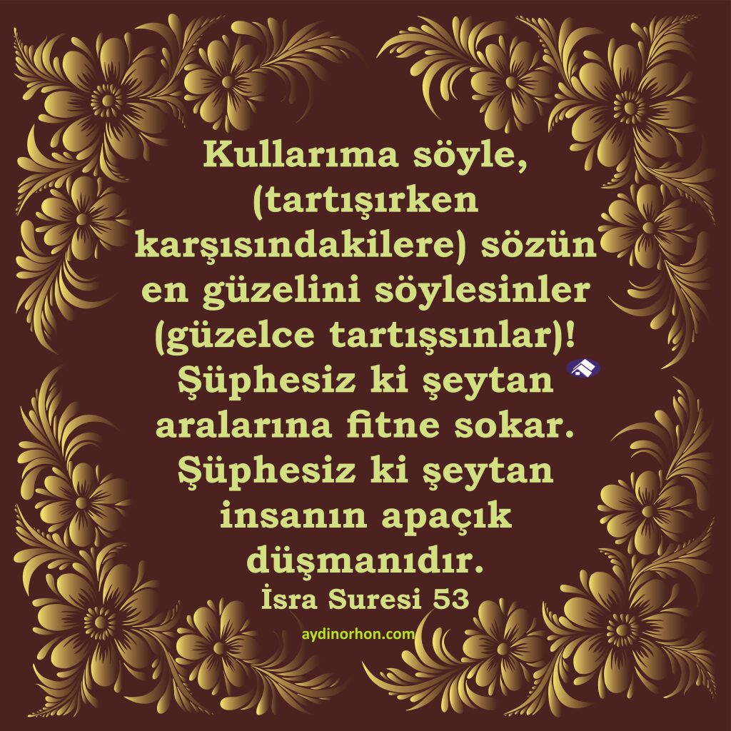 Günün Ayeti 28 Şubat 2025 Tatlı Dilli Olalım. Çirkin Cümleler Kurmayalım… ile aydinorhon İsra Suresi, 53. ayet Etiketlerdökmek kibar kırmak kötü söz Tatlı dilli Yazı gezinmesi Önceki YazıÖnceki Dinde Zorlama Yoktur!Sonraki YazıSonraki Yaşamımızı Kur’an’a Göre Şekillendirelim.